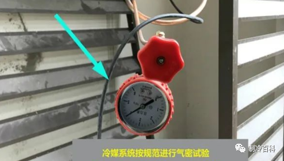 抽真空:外機安裝完畢后在充填冷媒前需要對冷媒管進行抽真空,把管內的空氣抽出,保持管內干燥、無水分,否則空氣和水會與冷媒混合產生冰晶,嚴重的會造成設備損壞。