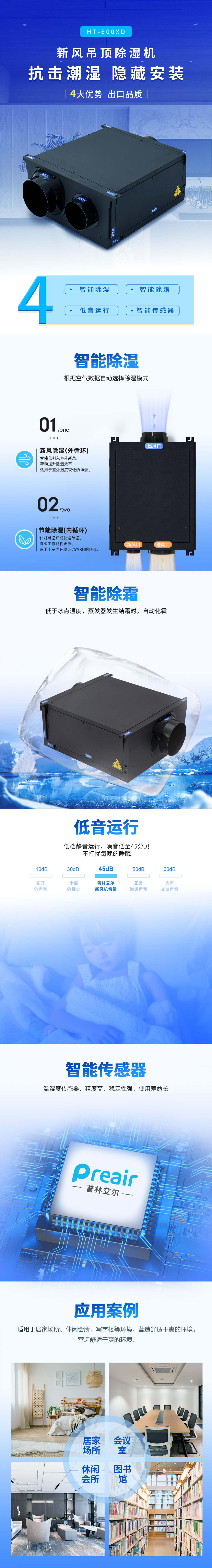 新風換氣、強勁除濕、潔凈空間、全電腦濕度數碼顯示,智能化霜;濕度1%可調,自動控制;壓縮機三分鐘延時保護;電腦斷電記憶功能;低噪音、大風力